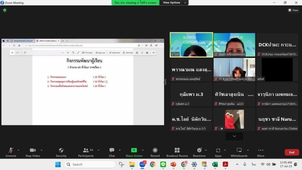 ในวันจันทร์ที่ 17 กรกฎาคม พ.ศ.2566 ศูนย์การเรียนเดวิดซ์ คอลลินส์ คริสเตน ได้จัดกิจกรรมการเรียนการเรียนการสอนเสริมและพบครูที่ปรึกษา ให้กับผู้เรียนระดับชั้นมัธยมศึกษาตอนต้น (ม.1 – ม.3) ผ่านระบบการประชุมทางไกล (Zoom meeting)