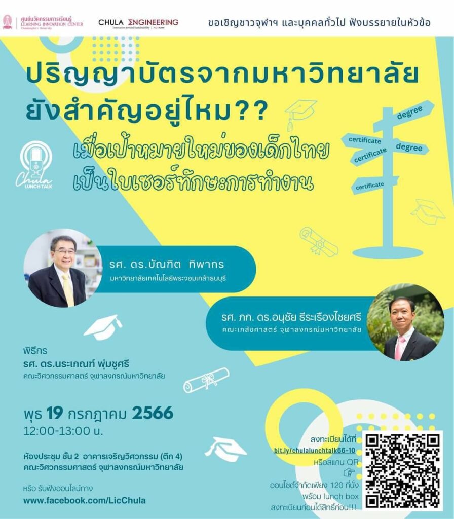 ปริญญาบัตรจากมหาวิทยาลัย ยังสำคัญอยู่ไหม? เมื่อเป้าหมายใหม่ของเด็กไทย เป็นใบเซอร์ทักษะการทำงาน หัวข้อบรรยายดีๆจากจุฬาลงกรณ์มหาวิทยาลัย