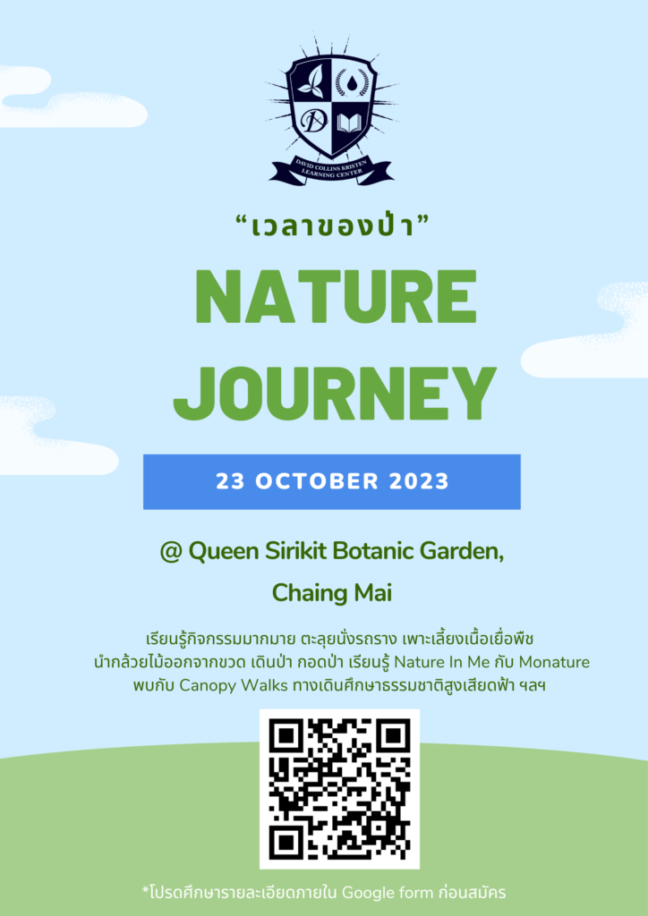 วันที่ 8 กันยายน 2566 คณะผู้บริหารและคณะครู ลงพื้นที่สำรวจ สวนพฤกษศาสตร์สมเด็จพระนางเจ้าสิริกิติ์ อำเภอแม่ริม จังหวัดเชียงใหม่ เพื่อเตรียมความพร้อมกิจกรรมส่งเสริมการเรียนรู้ให้กับผู้เรียน ศูนย์การเรียนเดวิดซ์ คอลลินส์ คริสเตน