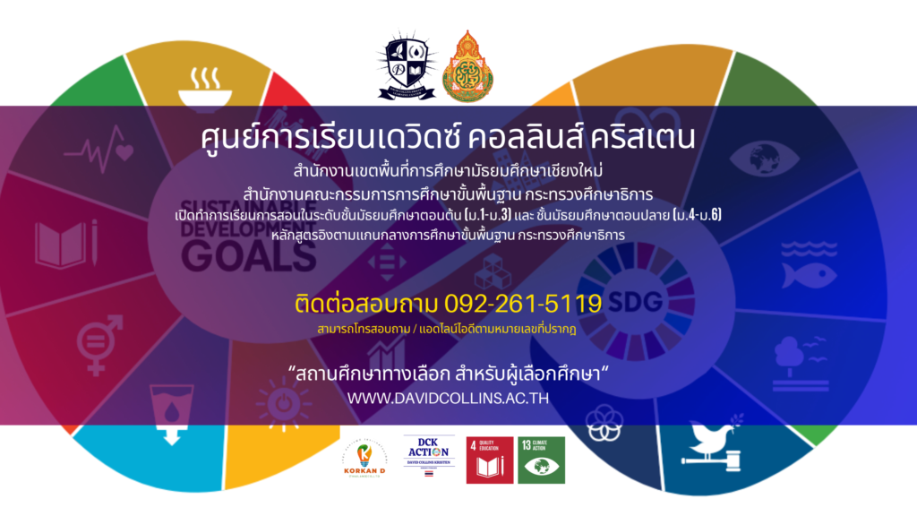 ศูนย์การเรียนเดวิดซ์ คอลลินส์ คริสเตน เปิดรับสมัครผู้เรียนระดับมัธยมศึกษาตอนต้น (ม.1-ม.3) และ มัธยมศึกษาตอนปลาย (ม.4-ม.6)