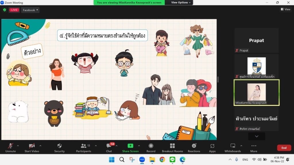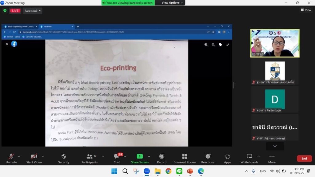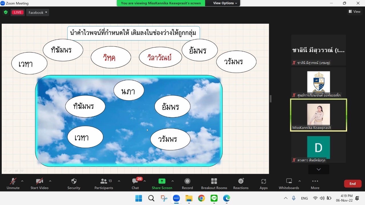 วันอาทิตย์ที่ 6 พฤศจิกายน 2565 สมาคมการศึกษาตลอดชีวิตและส่งเสริมกระบวนการเรียนรู้สิ่งแวดล้อมศึกษา (ส.ก.ส.ก.ส) ร่วมกับ สมาคมการศึกษาตลอดชีวิตและส่งเสริมอาชีพ(ส.ก.ส.อ.) จัดกิจกรรมการเรียนการสอนเสริมออนไลน์ ผ่านโปรแกรม Zoom โดยมีผู้เรียนของศูนย์การเรียนเดวิด คอลลินส์ และศูนย์การเรียนในเครือให้ความสนใจและเข้าร่วมเป็นอย่างดี