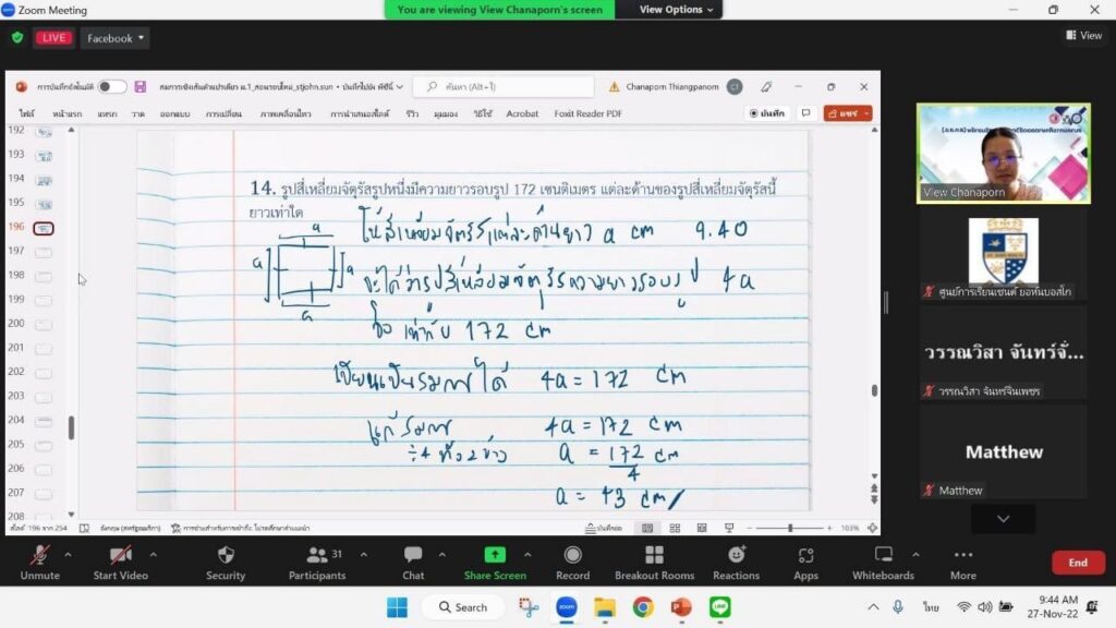 วันอาทิตย์ที่ 27พฤศจิกายน 2565 สมาคมการศึกษาตลอดชีวิตและส่งเสริมกระบวนการเรียนรู้สิ่งแวดล้อมศึกษา (ส.ก.ส.ก.ส) ร่วมกับ สมาคมการศึกษาตลอดชีวิตและส่งเสริมอาชีพ(ส.ก.ส.อ.) จัดกิจกรรมการเรียนการสอนเสริมออนไลน์ ผ่านโปรแกรม Zoom โดยมีผู้เรียนของศูนย์การเรียนเดวิด คอลลินส์ และศูนย์การเรียนในเครือให้ความสนใจและเข้าร่วมเป็นอย่างดี