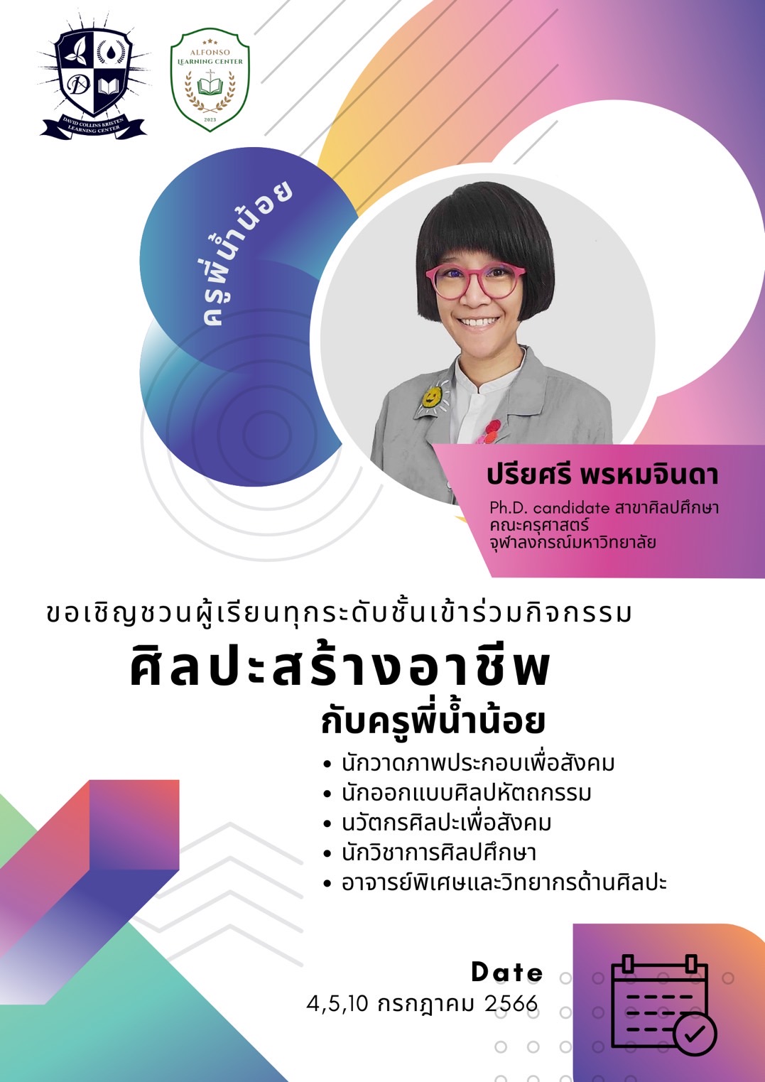 ศูนย์การเรียนเดวิดซ์ คอลลินส์ คริสเตน เชิญชวนผู้เรียนทุกคน เข้าร่วมคลาส “ศิลปะสร้างอาชีพ” จากคุณปรียศรี พรหมจินดา นิสิตระดับดุษฎีบัณฑิต คณะครุศาสตร์ จุฬาลงกรณ์มหาวิทยาลัย