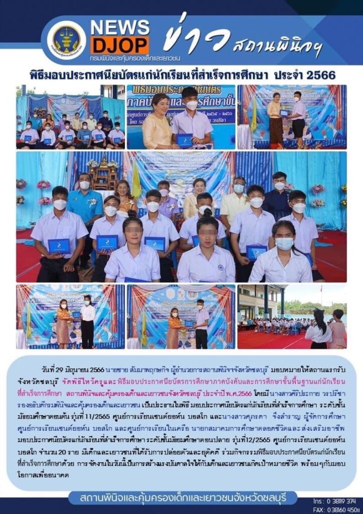 ภายในงานมีนางสาวศิริประกาย วรปรีชา รองอธิบดีกรมพินิจและคุ้มครองเด็กและเยาวชน กระทรวงยุติธรรม เป็นประธานในพิธี พร้อมทั้งมอบประกาศนียบัตรจบการศึกษาแก่ผู้เรียนศูนย์การเรียนเซนต์ ยอห์นบอสโก