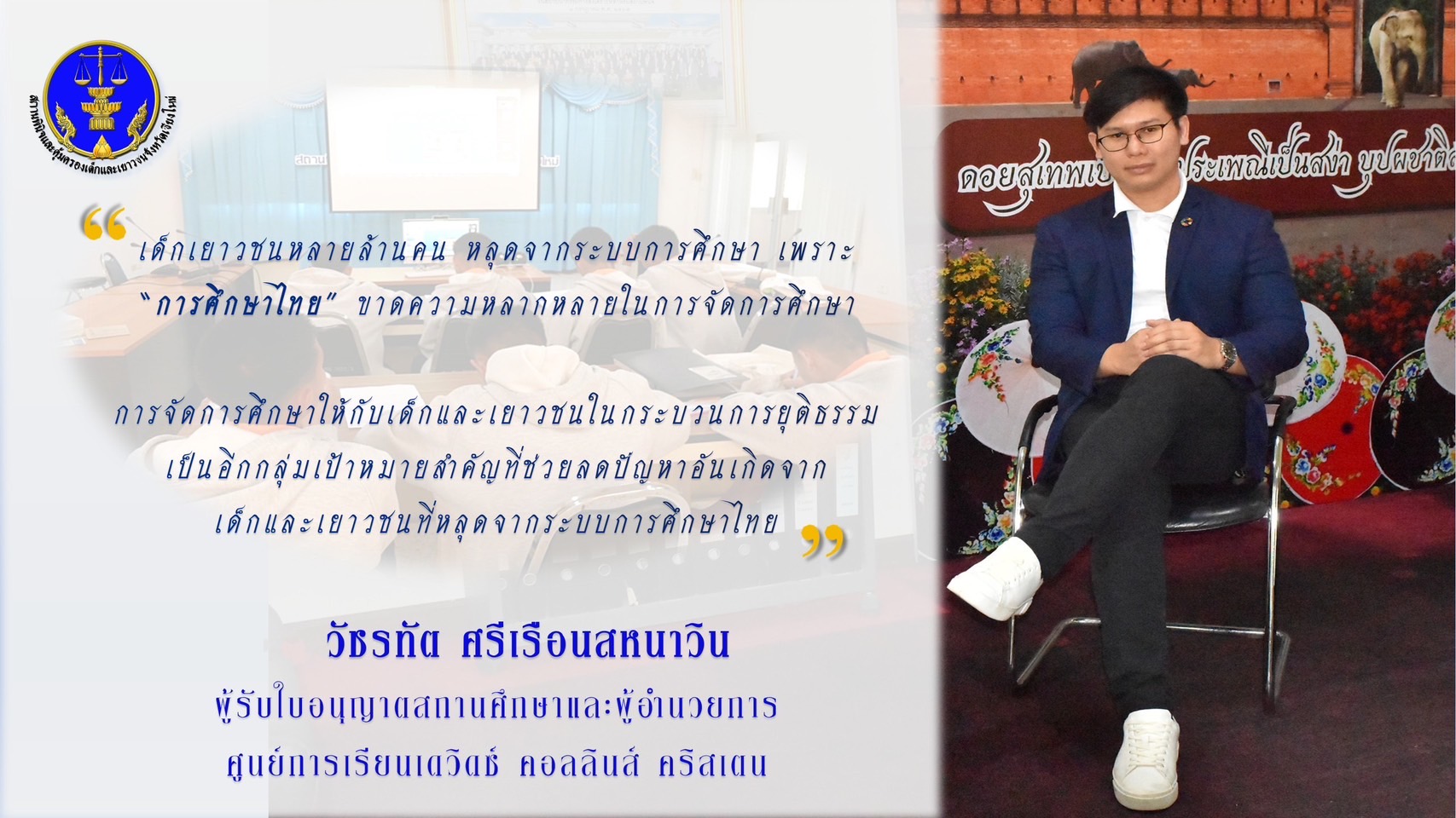 นายวัชรทัต ศรีเรือนสหนาวิน ผู้รับใบอนุญาตสถานศึกษาและผู้อำนวยการศูนย์การเรียนเดวิดซ์ คอลลินส์ คริสเตน ให้สัมภาษณ์กับ สถานพินิจและคุ้มครองเด็กและเยาวชนจังหวัดเชียงใหม่ เพื่อประกอบการเป็นองค์กรต้นแบบด้านสิทธิมนุษยชน ประเภทภาครัฐ กรมคุ้มครองสิทธิและเสรีภาพ