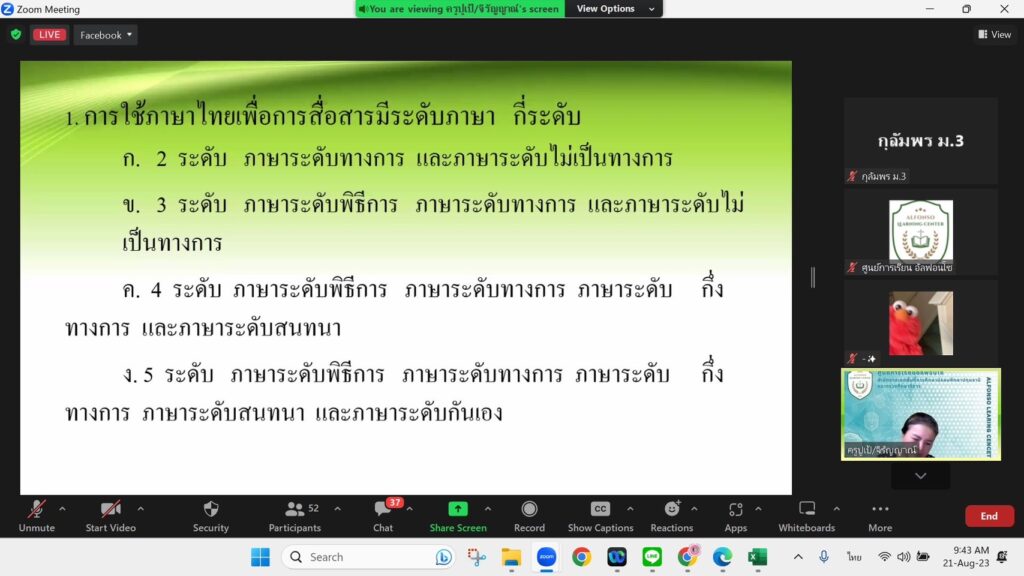 ในวันจันทร์ที่ 21 สิงหาคม พ.ศ.2566 ศูนย์การเรียนเดวิดซ์ คอลลินส์ คริสเตน ได้จัดกิจกรรมการเรียนการเรียนการสอนเสริมและพบครูที่ปรึกษา ให้กับผู้เรียนระดับชั้นมัธยมศึกษาตอนต้น (ม.1 – ม.3) ผ่านระบบการประชุมทางไกล (Zoom meeting)