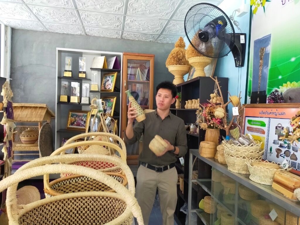 ทั้งนี้ได้หารือและวางร่วมกัน การสร้างการเรียนรู้ให้กับผู้เรียนและนำผลิตภัณฑ์มาส่งต่อสู่ผู้สนใจต่อไป สร้างรายได้ ตลอดจนการให้เป็นพื้นที่แห่งการเรียนรู้ทักษะต่างๆต่อไป จากคุณทวีศักดิ์ อ่องศิริกุล ประธานวิสาหกิจฯ แบรนด์จานใบไม้ในสวน และคุณแม่จันทร์เพ็ญ ชัยวุฒิ ประธานกลุ่มแฝกหลวง