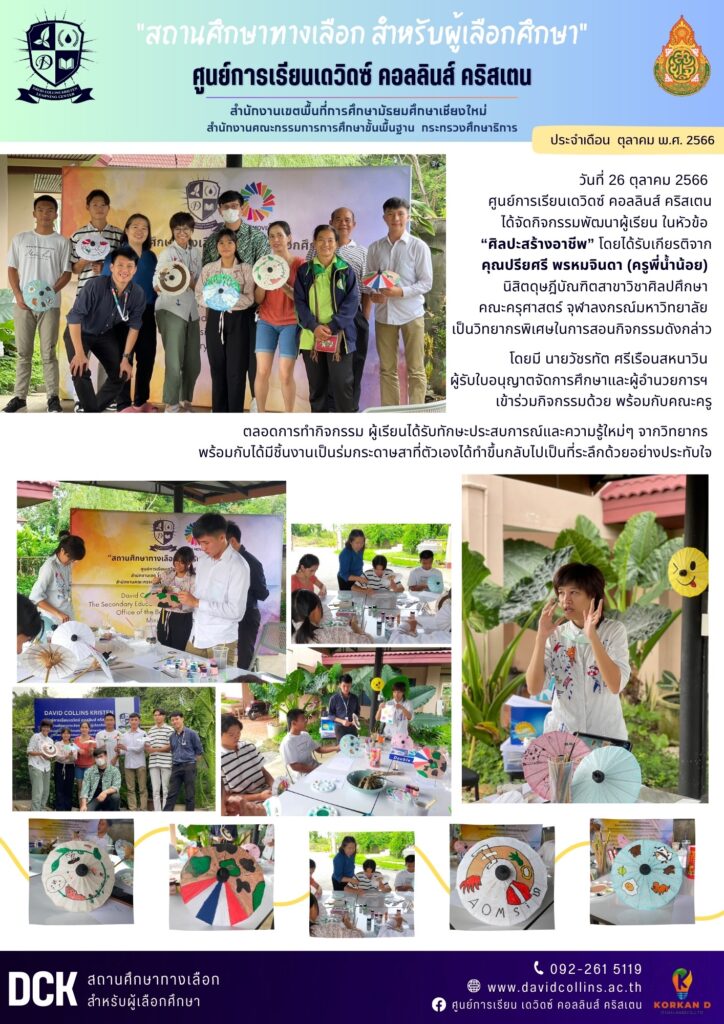 โดยได้รับเกียรติจาก คุณปรียศรี พรหมจินดา นิสิตดุษฎีบัณฑิตสาขาวิชาศิลปศึกษา จุฬาลงกรณ์มหาวิทยาลัย และศิลปินนักวาดภาพเพื่อสังคม เป็นวิทยากร ผู้เรียนและผู้ปกครอง เรียนรู้ร่วมกันอย่างมีความสุข สนุกสนาน