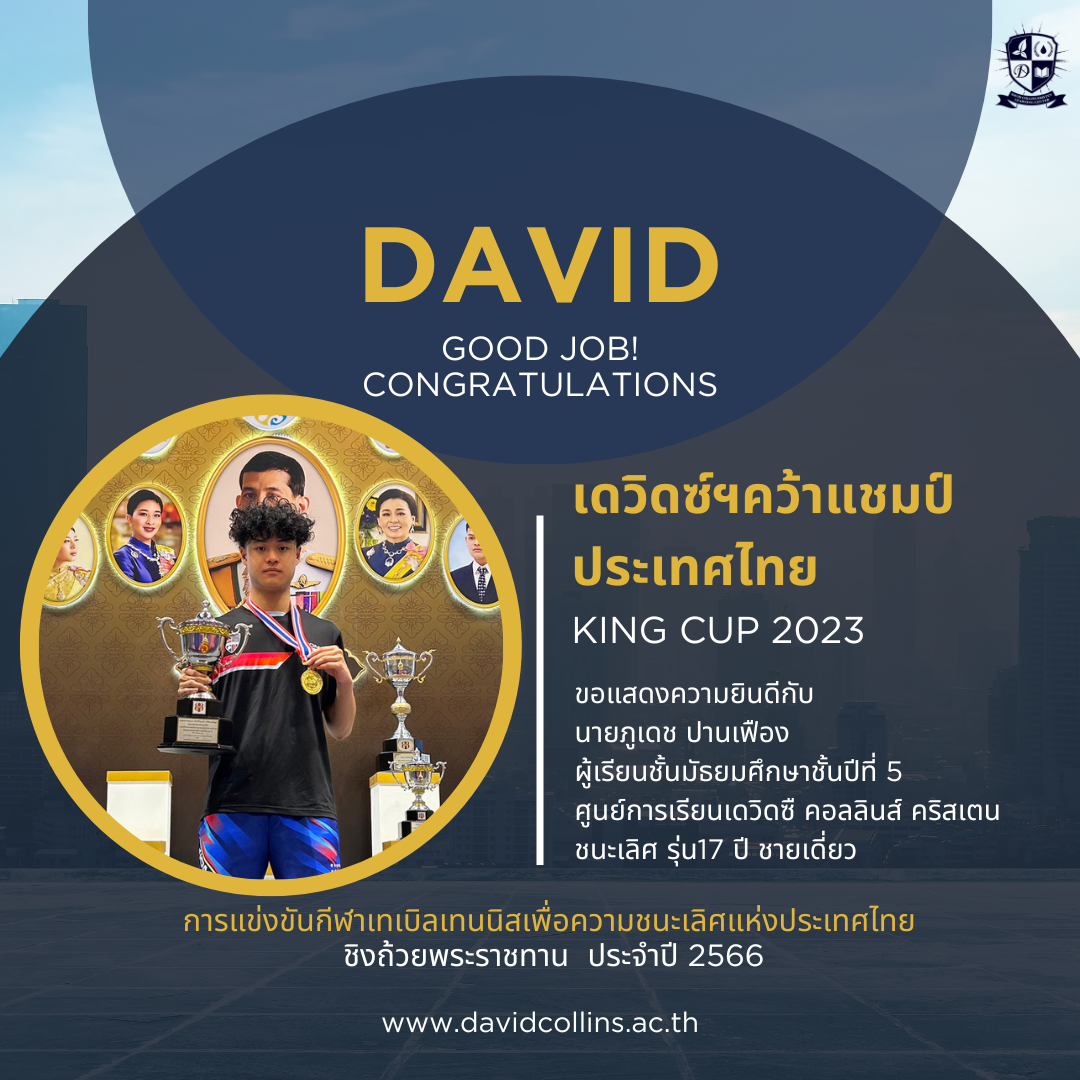 ขอแสดงความยินดีกับ นายภูเดช ปานเฟือง ผู้เรียนชั้นมัธยมศึกษาชั้นปีที่ 5 ศูนย์การเรียนเดวิดซ์ คอลลินส์ คริสเตน