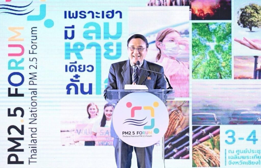 [ Thailand national pm 2.5 porum ] ภายใต้หัวข้อ “อากาศสะอาด : ความรับผิดชอบร่วมของรัฐ เอกชน และประชาสังคม” ดำเนินการจัดขึ้นโดย สำนักงานกองทุนสนันสนุนการสร้างเสริมสุขภาพ (สสส.) ร่วมกับ สำนักงานคณะกรรมการส่งเสริม-วิทยาศาสตร์ วิจัย และนวัตกรรม (สกสว.) , มหาวิทยาลัยเชียงใหม่ (มช.) , ศูนย์วิชาการเพื่อขับเคลื่อนการป้องกันและ-แก้ไขปัญหามลพิษทางอากาศ (ศวอ.) , มูลนิธิเพื่อลมหายใจเชียงใหม่ / สภาลมหายใจเชียงใหม่ และหน่วยงานภาคีเครือข่าย ทั้งภาครัฐ เอกชน และประชาสังคม ทั่วประเทศ จัดขึ้นระหว่างวันที่ 3-4 ธันวาคม 2566 ณ ศูนย์ประชุมและแสดงสินค้านานาชาติเฉลิมพระเกียรติฯ จ.เชียงใหม่ โดยภายในงานได้รับเกียรติจาก คุณจักรพล ตั้งสุทธิธรรม รองเลขาธิการนายกรัฐมนตรี ผู้แทนนายกรัฐมนตรี เป็นประธานกล่าวเปิดงาน และ การปาฐกถาพิเศษจาก คุณวีระศักดิ์ โควสุรัตน์ รองประธานคณะกรรมาธิการทรัพยากรธรรมชาติและสิ่งแวดล้อม วุฒิสภา ตลอดจนการเสวนาจากผู้ทรงคุณวุฒิต่ละหน่วยงานต่างๆ ที่เกี่ยวข้อง และงานเทศกาลเพื่อลมหายใจเชียงใหม่’ 3 ที่มีขึ้นในงานด้วย