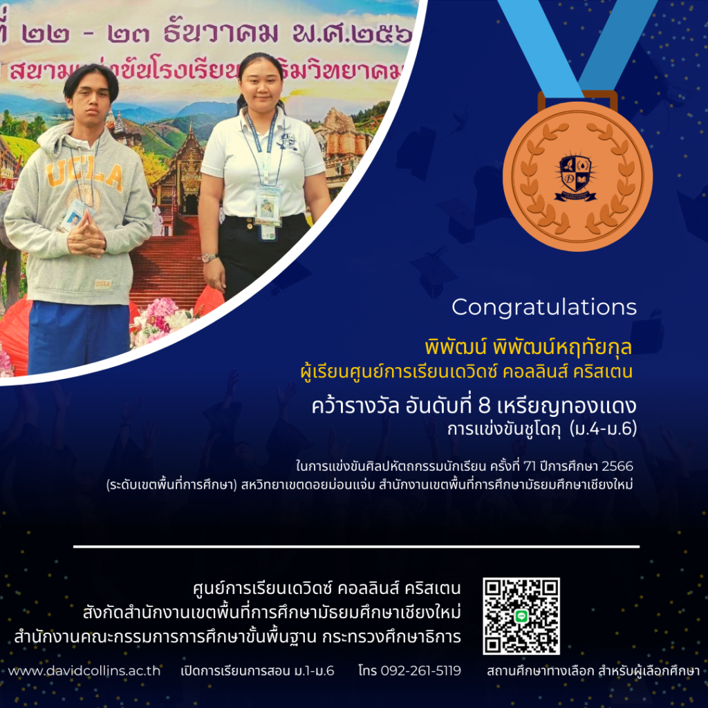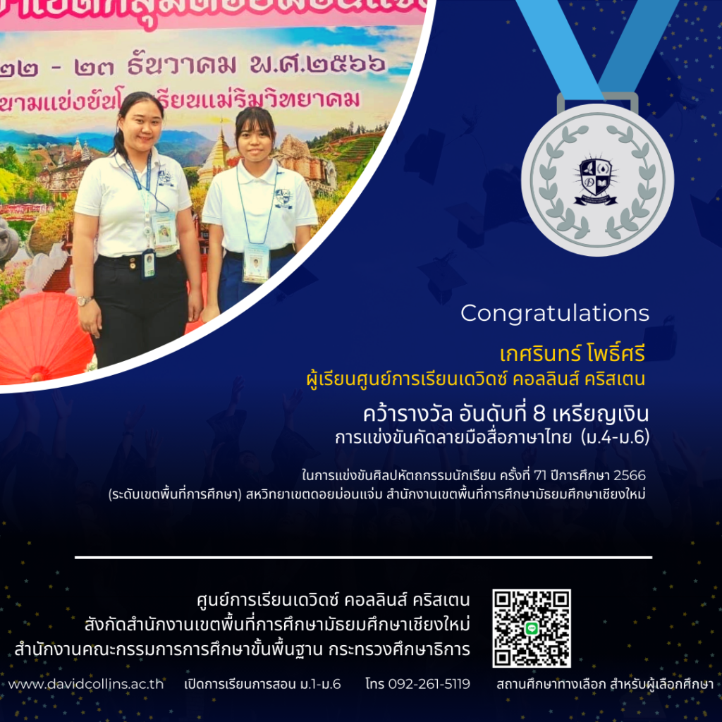 โอกาสดีสำหรับน้อง ๆ ที่ต้องการเตรียมความพร้อมอย่างจริงจังในสภาพแวดล้อมที่เหมาะสมและมีการดูแลอย่างใกล้ชิด 🌟 สิทธิพิเศษสำหรับผู้ที่ย้ายมาเรียนประจำกับเรา:✅ ย้ายมาเรียนที่เชียงใหม่ พร้อมรับรองผล✅ มีที่พักให้ สะดวก ปลอดภัย✅ มีพี่เลี้ยงดูแลตลอดการเรียน✅ ฝึกพลศึกษาอย่างต่อเนื่องตลอดทั้งปี เสริมสร้างร่างกายและวินัย 📍 เหมาะสำหรับผู้ที่มุ่งมั่น เตรียมพร้อมสู่เส้นทางการสอบเข้าโรงเรียนเตรียมทหาร สอบถามรายละเอียดเพิ่มเติมหรือสมัครได้ที่📞 [087-952-1860] เยี่ยมชมเว็บไซต์ https://cmcadet.com/ การเดินทาง : https://davidcollins.ac.th/?page_id=565