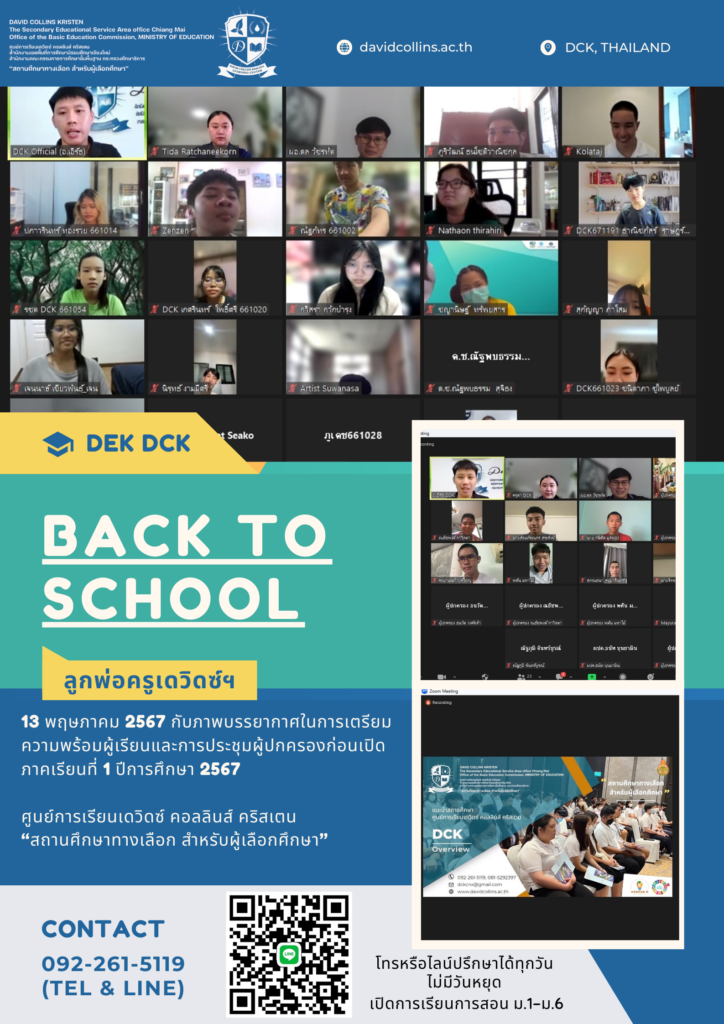 13 พฤษภาคม 2567 กิจกรรมเตรียมความพร้อมและสื่อสารกับผู้ปกครองและผู้เรียน ภาคเรียนที่ 1 ปีการศึกษา 2567 ศูนย์การเรียนเดวิดซ์ คอลลินส์ คริสเตน “เมื่อโลกเปลี่ยน คนต้องปรับ และต้นกล้าเหล่านี้ จึงนับว่าเป็นต้นกล้าคุณภาพตามบริบท ตามศักยภาพรายบุคคล”