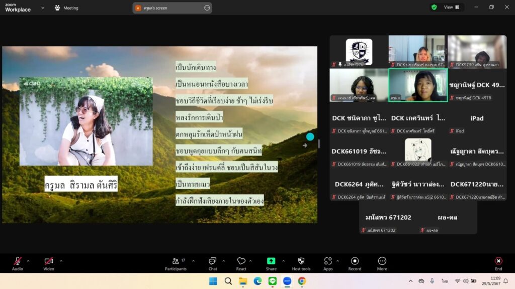 ในวันพุธที่ 29 พฤษภาคม พ.ศ.2567 ศูนย์การเรียนเดวิดซ์ คอลลินส์ คริสเตน ได้จัดกิจกรรมการเรียนการสอนเสริม / พบครูที่ปรึกษา ให้กับผู้เรียนระดับชั้นมัธยมศึกษาตอนปลาย (ม.4- ม.6) รอบปกติ วันพุธ ภาคเรียนที่ 1/2567 ผ่านระบบการประชุมทางไกล แอปพลิเคชัน ZOOM Cloud Meetings